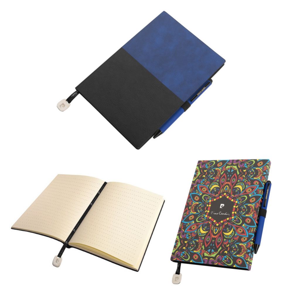 Značková sada luxusního dvojbarevného poznámkového bloku A5 Pierre Cardin REPORTER a elegantního kuličkového pera Pierre Cardin CELEBRATION v pěti módních barvách. Poznámkový blok obsahuje 160 stran s tečkovanými linkami o gramáži 80 g a textilní záložku s kovovým přívěskem s logem Pierre Cardin. Na zadní straně bloku je vyraženo logo Pierre Cardin. Kuličkové pero má hliníkové tělo s gumovou povrchovou úpravou, která je velmi příjemná na dotek, stylus a černé detaily. Obsahuje kvalitní modrou náplň s hrotem 0,7 mm. Sada je balena v dárkovém obalu Pierre Cardin, dodáváno s certifikátem pravosti.